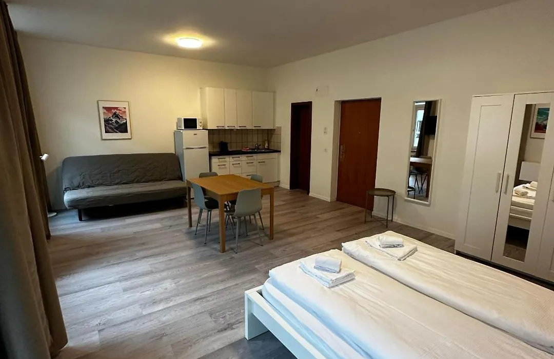 Het appartement biedt koffie- en theevoorzieningen en een keuken met een koffie/theezetapparaat, keukengerei en eetgerei aan. Dit appartement is te bereiken net uit Kreuzstrasse bushalte.